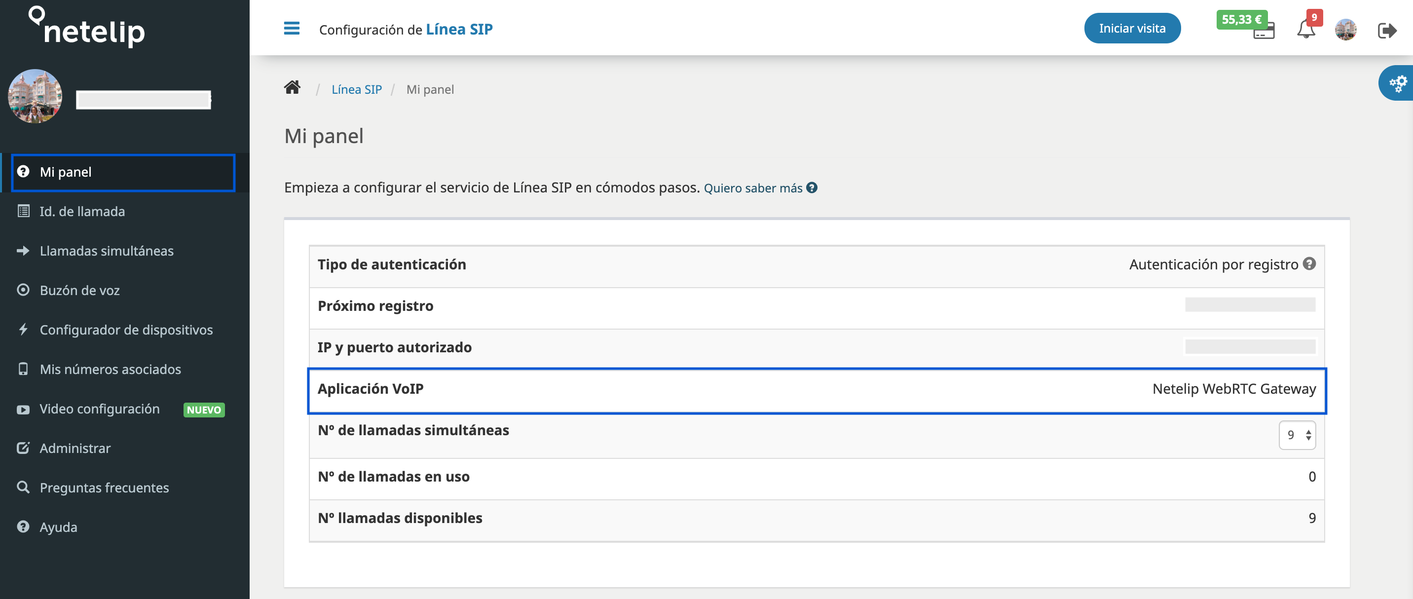Para autenticarse por registro, tienes que hacer uso de los datos de usuario y contraseña SIP que aparecen en la sección “Configurador de Dispositivos”.